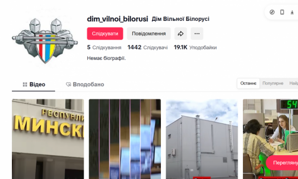 Скрыншот фэйкавай старонкі Дому Вольнай Беларусі ў Tik­Tok