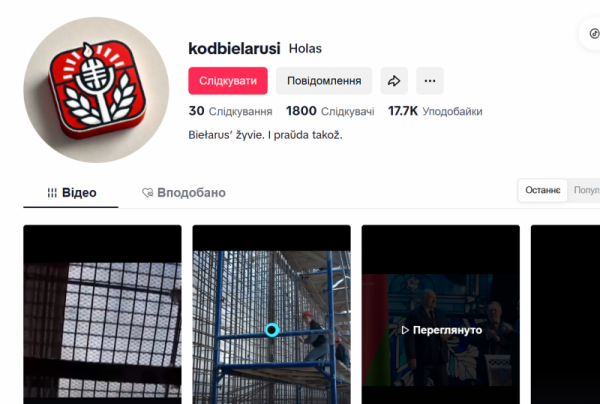 Скрыншот акаўнту kod­bielarusi Holas у Tik­Tok