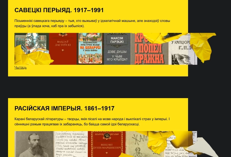 Каб візуальна паказаць замежнікам абсурднасць сітуацыі, мы стварылі выставу і сайт пра забароненыя кнігі. Забароненыя кнігі — пункт уваходу ў тэму, бо гэта спосаб гаварыць пра аўтараў, пра чытачоў, пра культуру і беларускую ідэнтычнасць. А з іншага боку, гэта сама па сабе вельмі цікавая тэма.