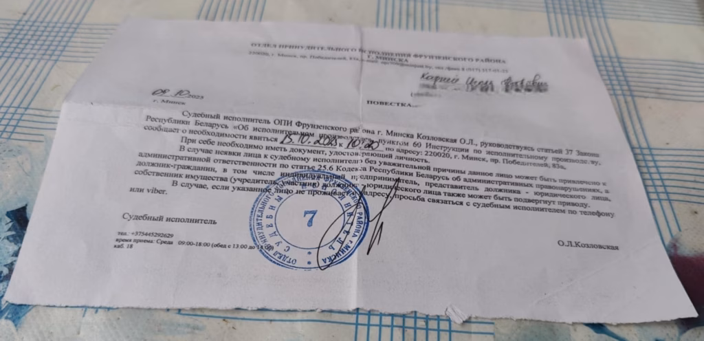 «Аказваецца, патрабуюць пагасіць запазычанасць за атрыманыя паслугі на Валадарцы. За 2023 год! Паўтары базавыя, то бок 63 рублі! Пры гэтым юрысты кажуць, што спагнанне абсалютна незаконнае: пакуль чалавек у статусе падазраванага і следства толькі высвятляе абставіны “злачынства”.